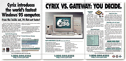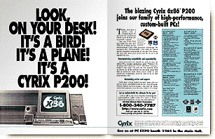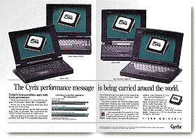 This ad was created to highlight the superior performance of laptops with Cyrix chips, to both consumers and the trade.