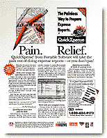 QuickXpense takes the "pain' out of preparing expense reports by automating the process. With no retail distribution, Portable Software depended on the telephone response to this one ad for their success as a company. The